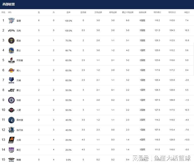 NBA最新排名!雷霆两队保持不败,湖人追近勇士,火箭快船肩并肩