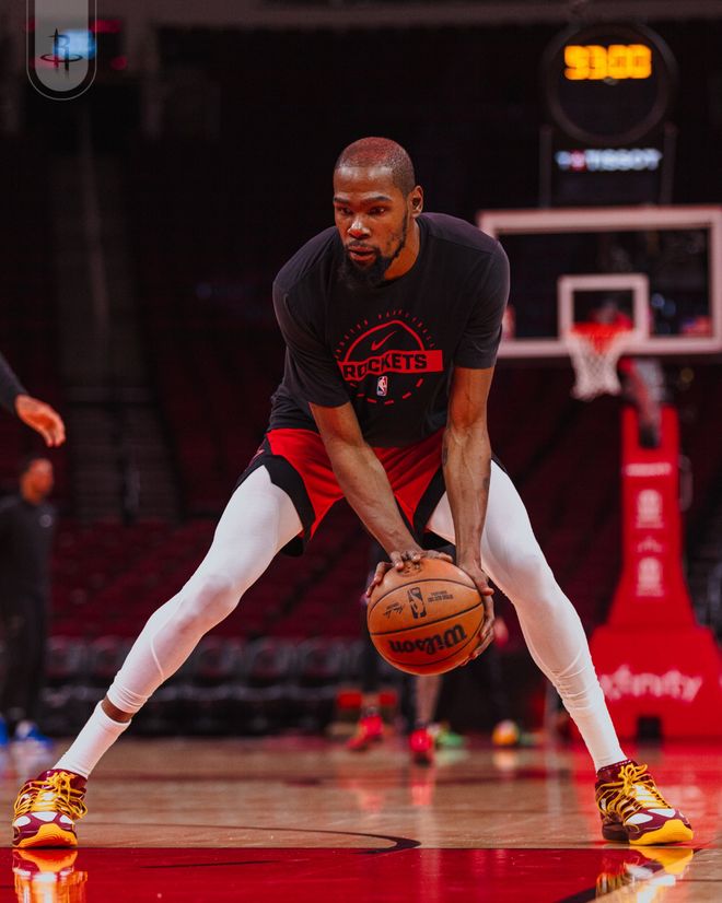 火箭队首发阵容:汤普森、奥科吉、杜兰特、史密斯、申京